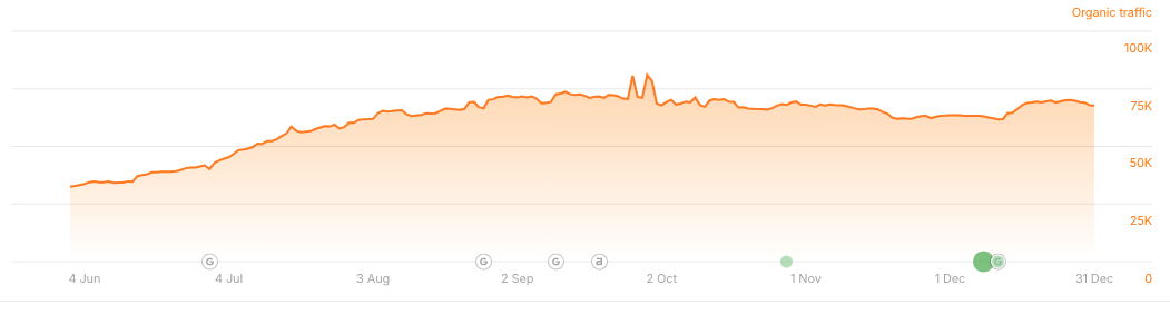 Traffic Surge: Organic traffic exploded, averaging from 15,870 visits a day in January to 67,494 visits a day in August.
