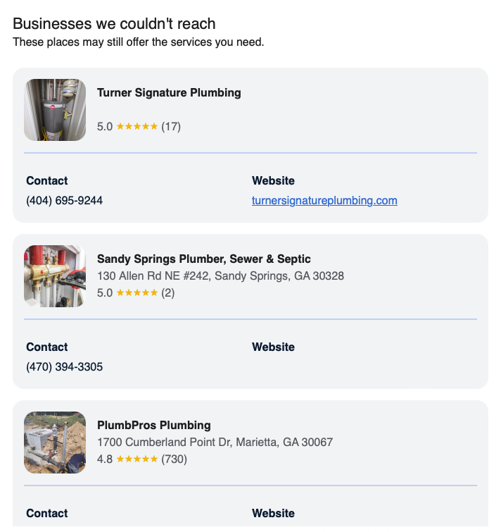 But here's where it gets interesting: only businesses that actually answer the phone make it into the customer's results email. One test found that when Google's AI called nine local businesses, only four answered. Those four were quoted directly in the results. The other five? Grouped under a section labeled "Businesses we couldn't reach."